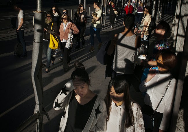 "una serie de fotos que reflejan la la búsqueda de intimidad de los jóvenes –como colectivo abstracto, puedes ser tu o puedo ser yo- a través de espacios abiertos y completamente públicos un sábado cualquiera por la noche. El fotógrafo se convierte en vouyeur y roba esos pequeños instantes de charla profunda entre amigas en un sillón a la entrada